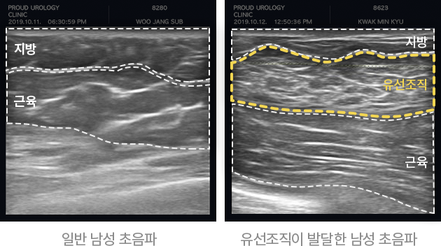 초음파 검사를 통해 유선조직 유무에 따라