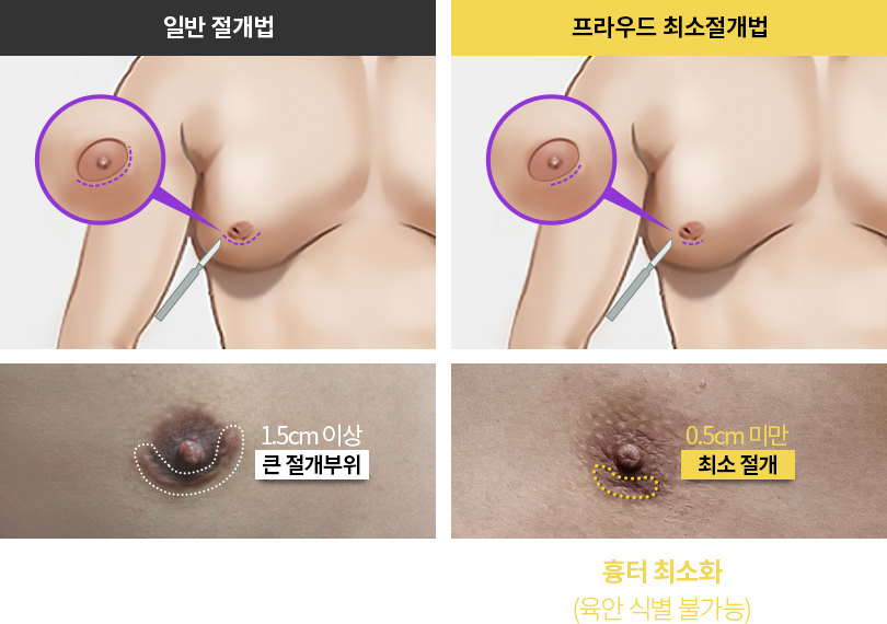 5mm 미만의 초미세절개로 흉터가 눈에 띄지 않습니다.