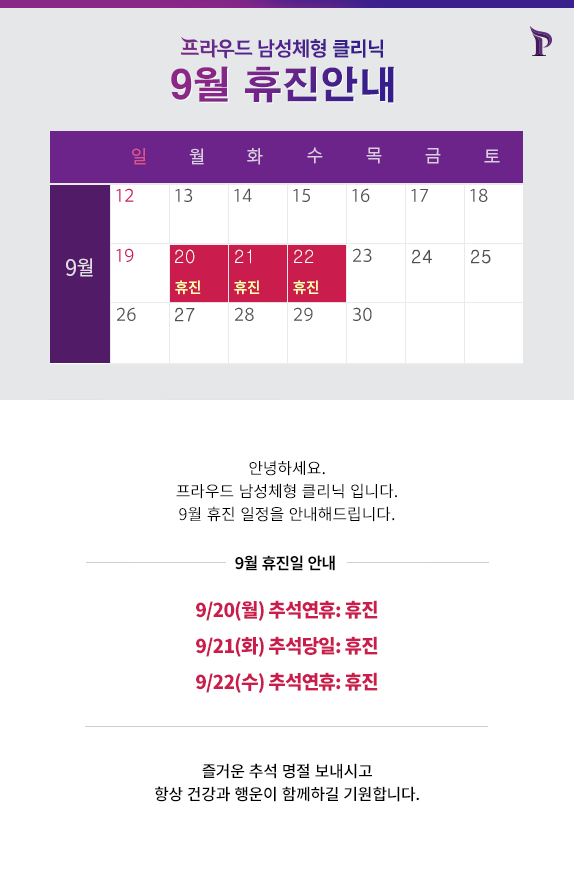 | [진료안내] 9월 휴진 일정 안내 | |||||