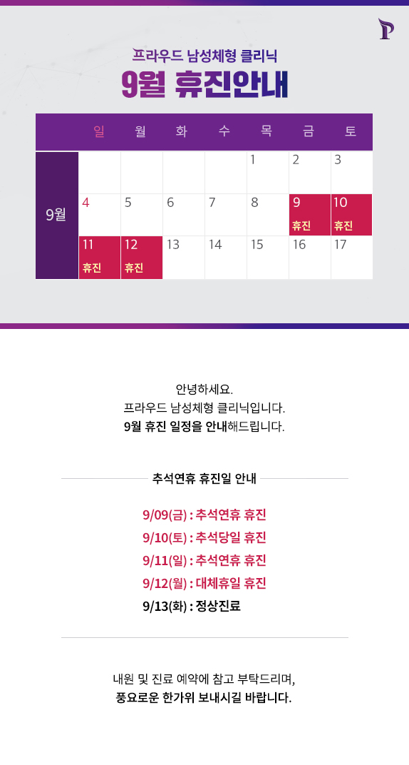 | [진료안내] 9월 휴진 일정 안내 | |||||